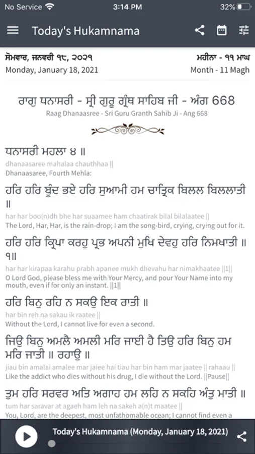 Mukhvak is a unique, easy to use Mobile Application that provides a Daily Hukamnama service with instant access to Guru’s Royal Decree from Sri Harmandir Sahib Jee, Amritsar. Mukhvak offers multiple distinctive features such as the audio of the Daily Hukamnama from Sri Harmandir Sahib Jee, the Katha of the Daily Hukamnama from Manji Sahib Jee as well as the monthly Sangrand Hukamnama. Mukhvak provides the ability to Sangats worldwide to easily access GurooSaaaheb’s Royal Decree and the option to read and understand it in multiple languages.