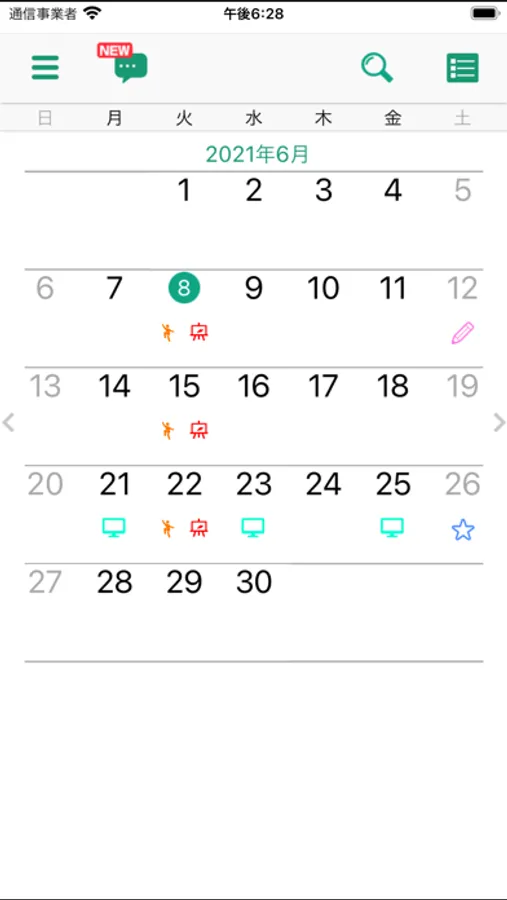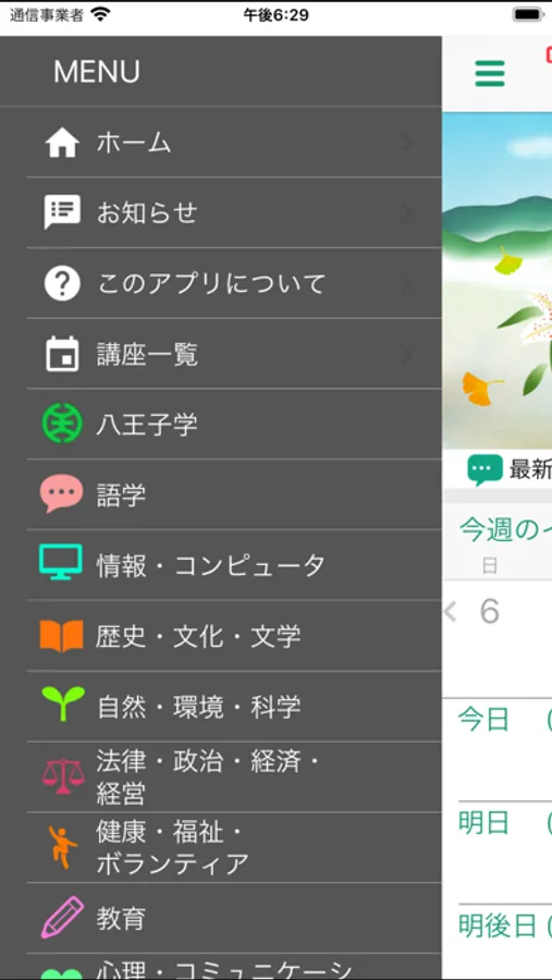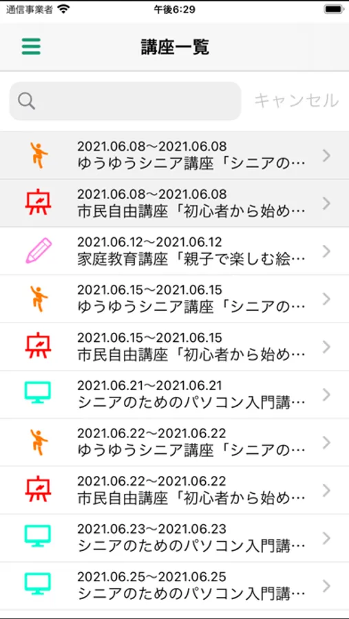 講座情報を日ごと、週ごと、月ごとの3パターンで確認することができます。