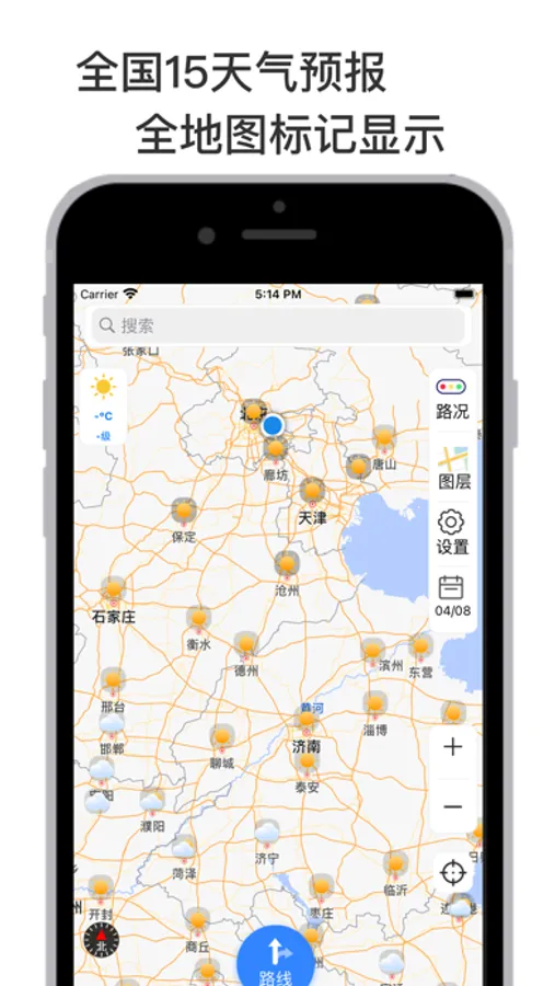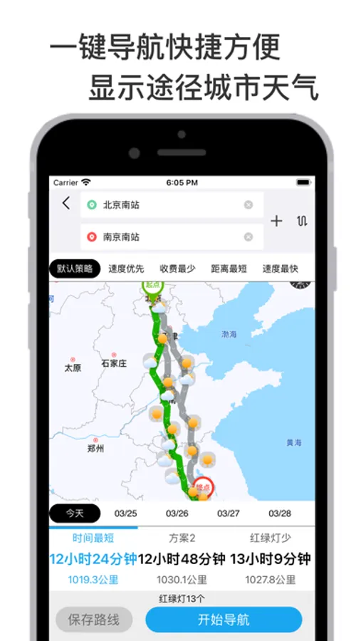 -支持全国高速省道导航途径城市15天天气预报,