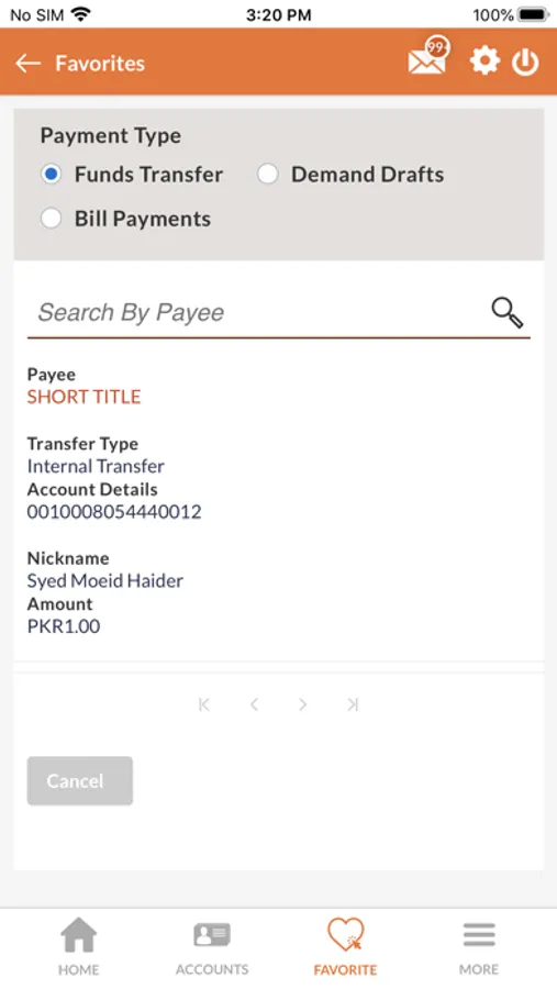 • Manage Payee’s list