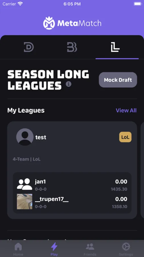 MetaMatch is a the ultimate fantasy sports application for your favorite esports. Create and join contests and leagues for the top esports in the world like League of Legends, CounterStrike, Overwatch, Rocket League, NBA2k and more! All contests are free and there are many ways to play including daily contests, season long leagues, and best draft leagues! MetaMatch is built by gamers, for gamers to provide the ultimate Fantasy Esports experience!
