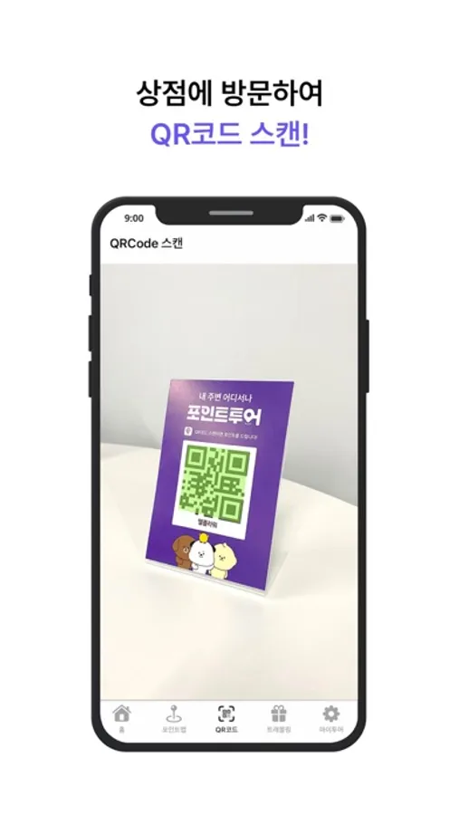 1. 상점에 방문해서 QR코드를 찍기만 하면 포인트!