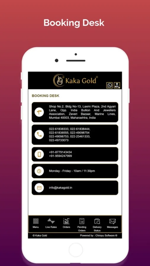 The contact details of our company such as address, telephone numbers, mobile numbers, email I'd, website details are all mentioned under BOOKING DESK