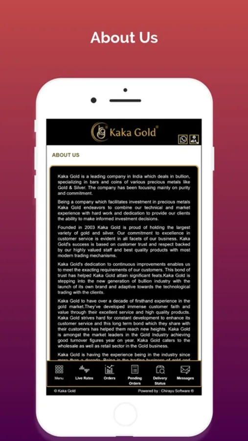 Founded in 2003 Kaka Gold is proud of holding the largest variety of gold and silver. Our commitment to excellence in customer service is evident in all facets of our business. Kaka Gold's success is based on customer trust and respect backed by our highly valued staff and best quality products with most modern trading mechanisms.
