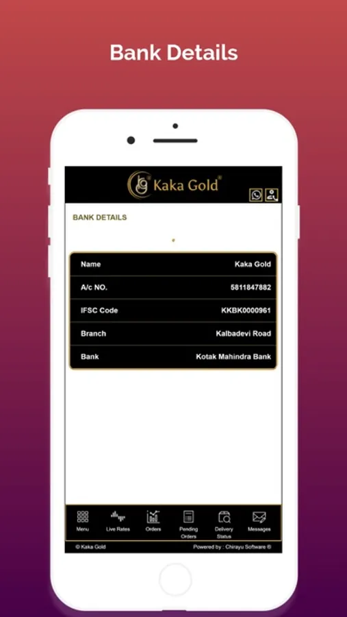 The app also has the Bank details page that shows of all our banks to facilitate payment by our clients.