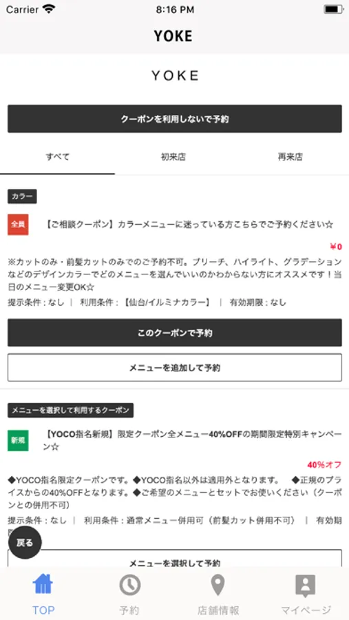 お得なクーポンが配信されます。ネット予約時にクーポン利用での予約も可能なので来店時もスムーズに施術頂けます。
