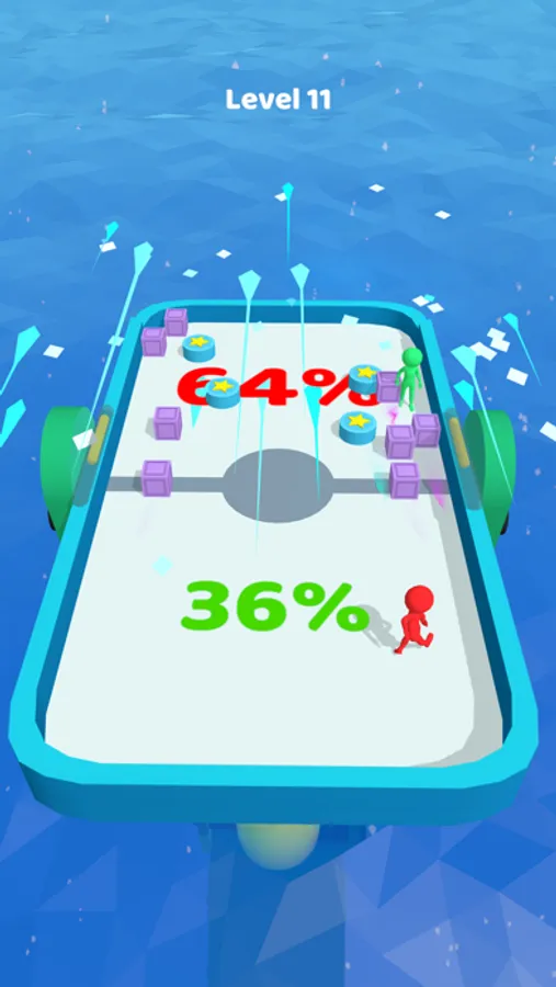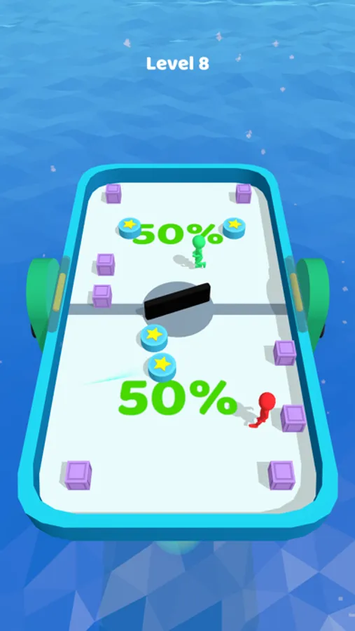 Drag to move and lose to kick. Kick objects to another side to make the seesaw lose balance and crash your enemy!