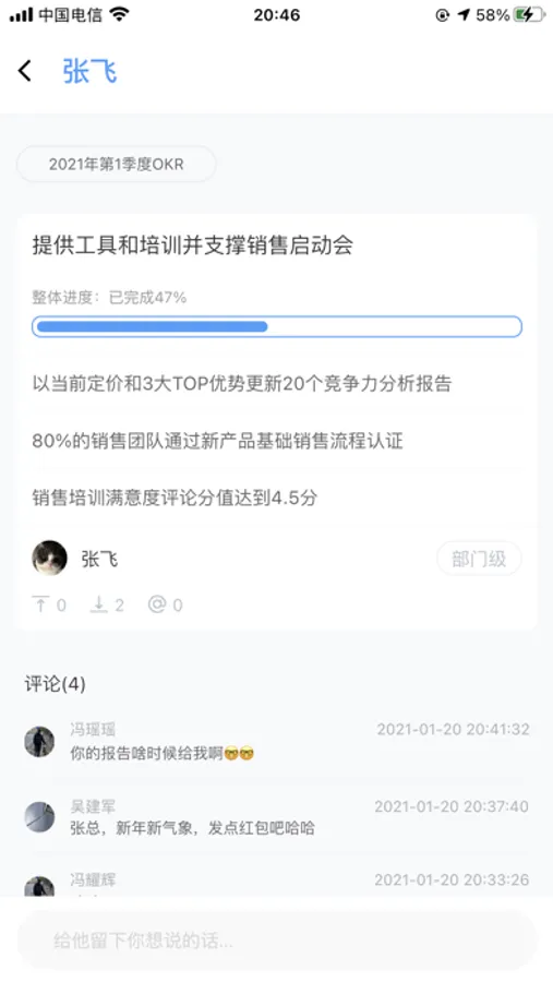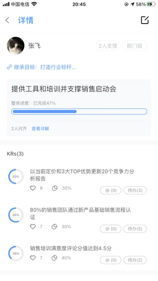 关联组织架构,用户可继承上级目标,@寻求团队协助,整个团队是一张互相连接的大网,每个人都在为共同的目标做贡献;