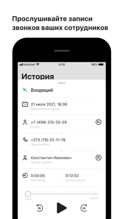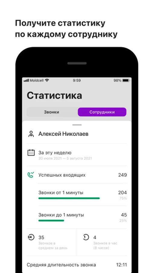 Скачивайте мобильное приложение Виртуальная АТС Moldcell, вводите логин и пароль от личного кабинета и будьте уверены, что все звонки под контролем.