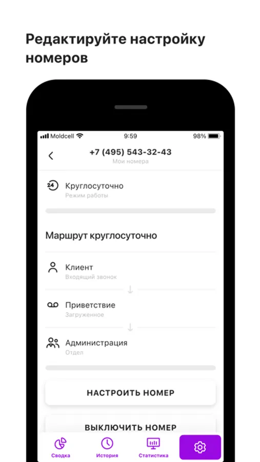 Мобильное приложение – для тех, кто понимает, насколько важен для бизнеса каждый звонок, и хочет иметь доступ к Виртуальной АТС Moldcell, даже находясь вне офиса. С мобильным приложением основными функциями Виртуальной АТС можно воспользоваться прямо в смартфоне.