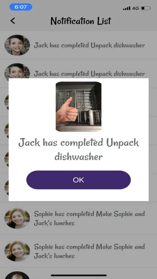 • Parents can pre-program encouraging messages to be sent to their child when they complete chores for themselves, and a different one for when they do chores for the family.