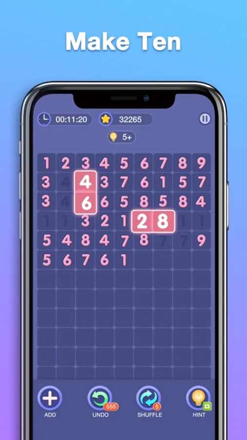 When there are no matches on the board, you can tap the ADD button to drop the new numbers on the puzzle pages.