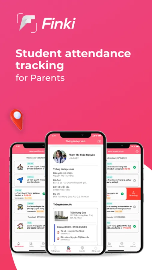 Finki allows taking attendance and tracking of the entire student route to school - addresses the concern of parents and the school in supervising their children/students at separated responsibilities.