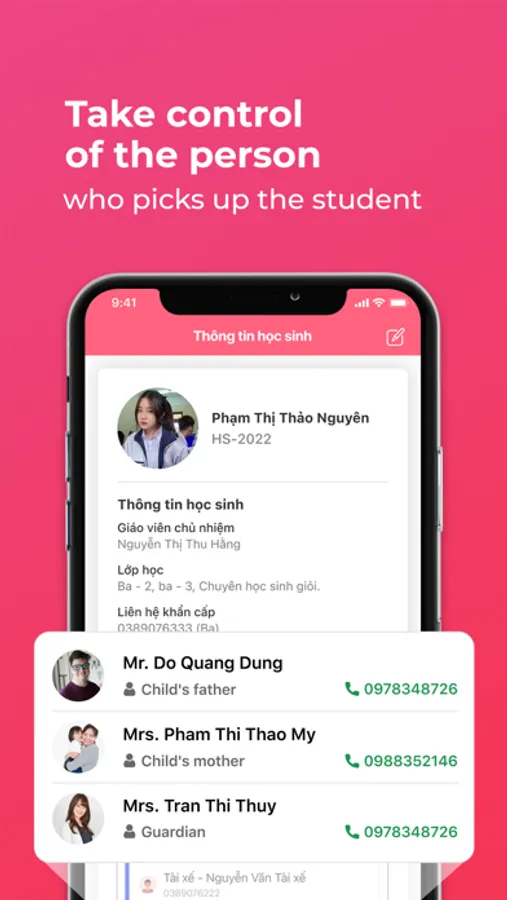 - Instant alert if the student is absent and notification school information, notice from teachers and parents.