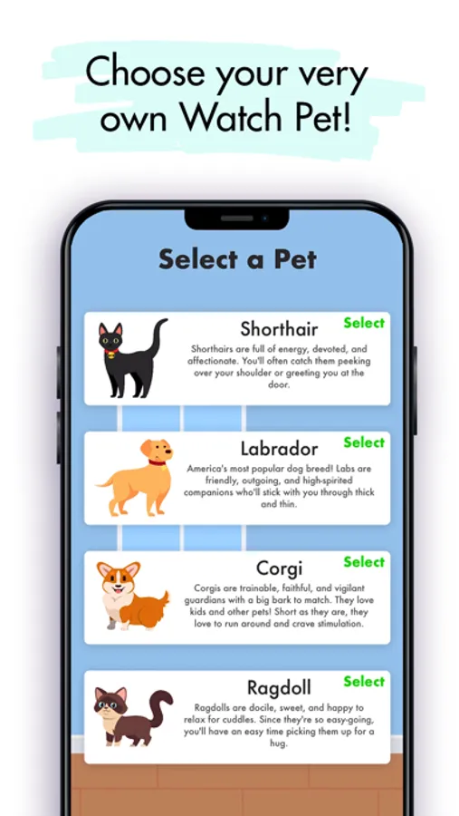 Watch Pet gives you the chance to meet and own various fur babies with unique personalities. Adopt your free virtual friend and add some fun to your life with Watch Pet!