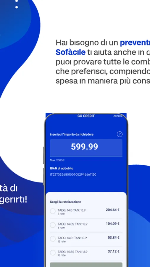Prova oggi la comodità e la semplicità di Sofàcile! Scarica subito l'app e prendi il controllo del tuo futuro finanziario, direttamente dal tuo divano.