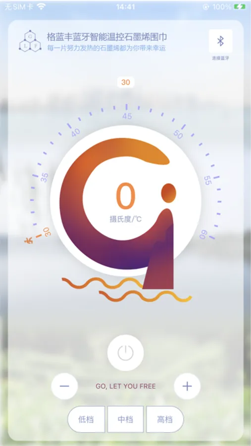 此APP配合格蓝丰蓝牙智能温控石墨烯围巾使用,让你自由的脚步不再受寒风的束缚。