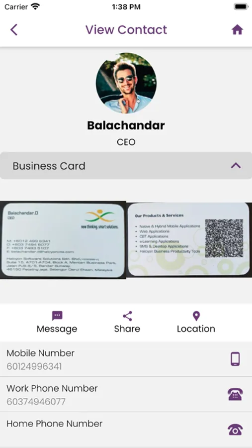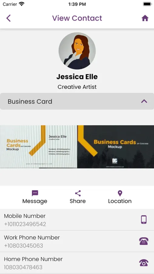 - Share Contact: Share contacts across social media and sharing apps as vCard or share Business Card as images.