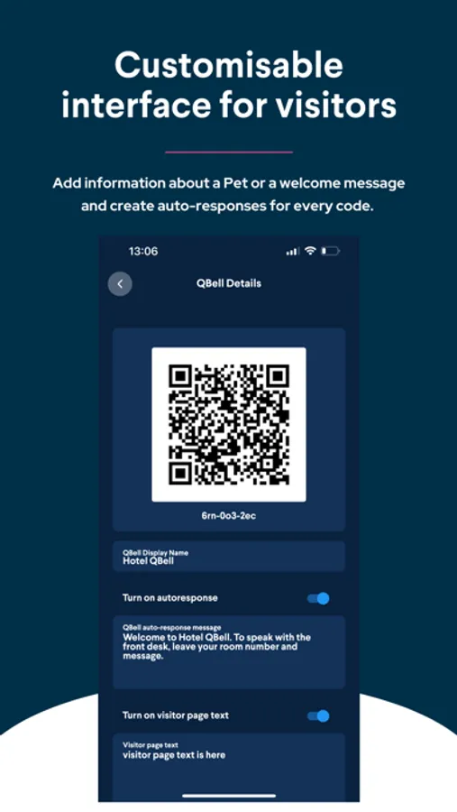 • Customisable Settings: Make each code your own. Set custom names, display messages, and auto-responses for each QBell code.