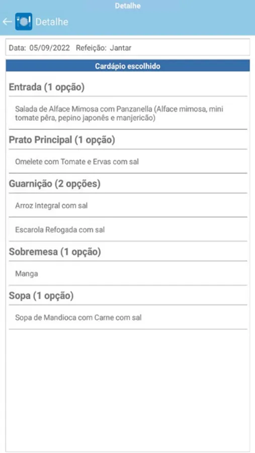 Possibilita a escolha das opções de cardápio diretamente no celular, além do poder avaliar a satisfação das possíveis refeições consumidas em nossa instituição.