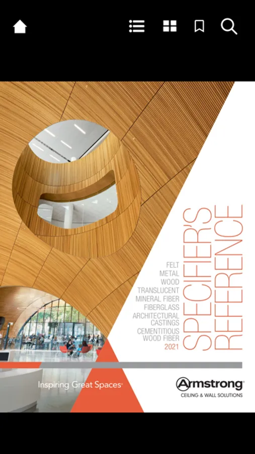 Armstrong Ceiling & Wall Solutions Digital Specifier’s Reference helps you find what you need, when you need it whether you are on your computer, tablet, or phone. Get the broadest portfolio of ceiling & wall solutions at your fingertips in an easy-to-use catalog experience that’s always up to date.