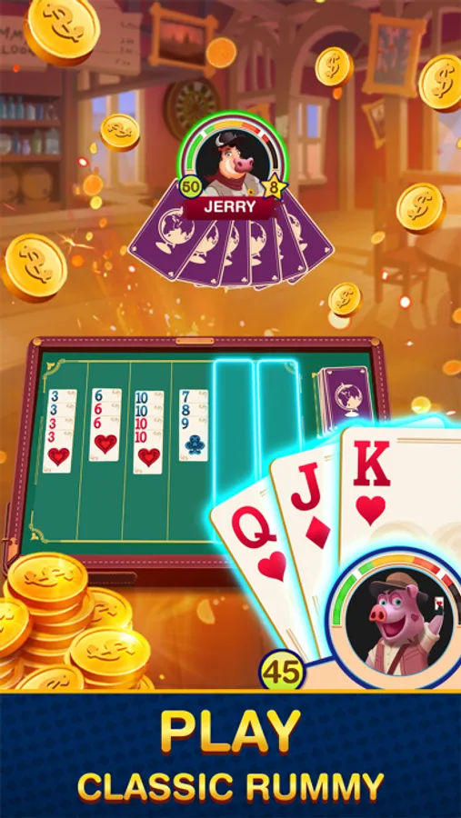 • Relish the competitive spirit of Rummy Tales and revel in the hefty coin rewards that accompany each triumph.
