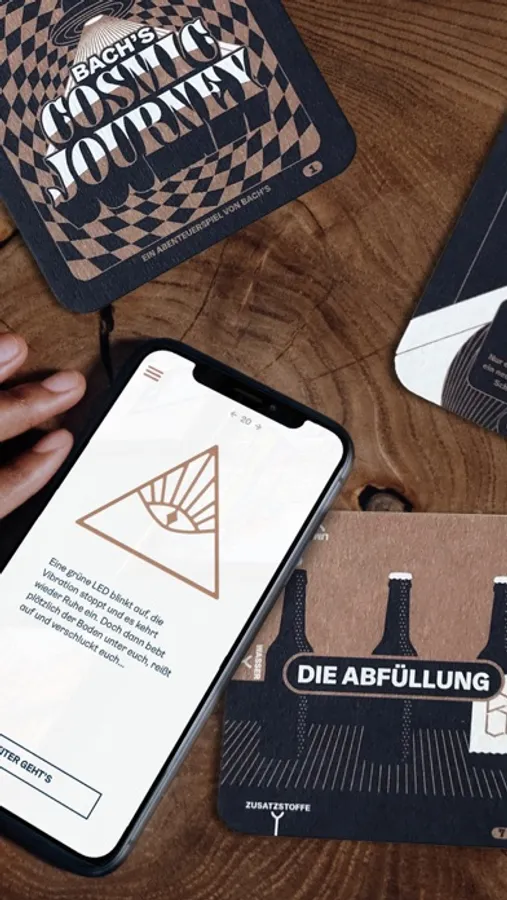 Wir kreieren Spiele-Erlebnisse für Premium-Marken – vom klassischen Gesellschaftsspiel bis zur digitalen Spielewelt. Spannend für uns sind Produkte, die eine Geschichte zu erzählen haben. Für BACH’s haben wir ein Exit-Game entwickelt, bei dem die Spieler gemeinsam die geheimnisvollen Rätsel rund um eine alte Brauerei in Neunkirchen lösen. Der Clou: Um das Spiel zu spielen, braucht man neben einer App und den „Abenteuer-Bierdeckeln“ auch das Bier, das der Schlüssel zu einigen Rätseln ist.