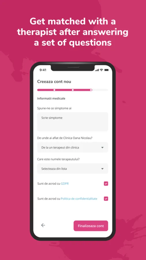 iCON ușurează și eficientizează procesul terapeutic. După ce răspundeți la un set de întrebări vă vom recomanda specialistul potrivit nevoilor dumneavoastră. Acum, puteți intra în contact cu psihoterapeutul, direct din aplicație prin apel video sau puteți înregistra o programare în cadrul clinicii, la orice oră și de oriunde fără pași suplimentari.