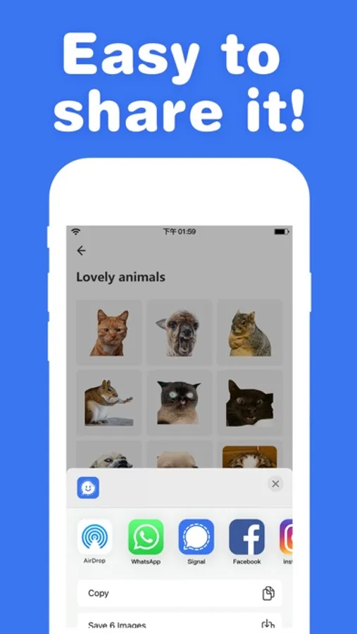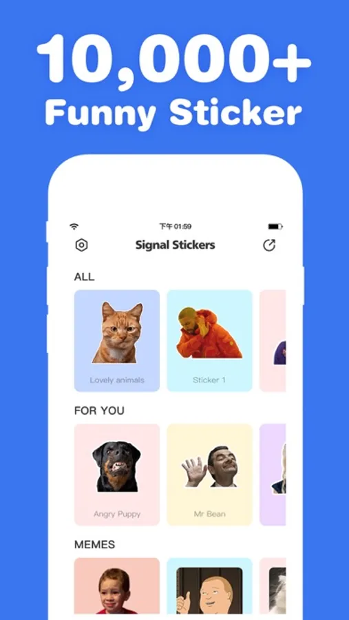 It provides a wide range of popular sticker packs, and supports share the top stickers and memes to all the chat apps, including iMessage, Signal, WhatsApp, Instagram and Twitter with one click.