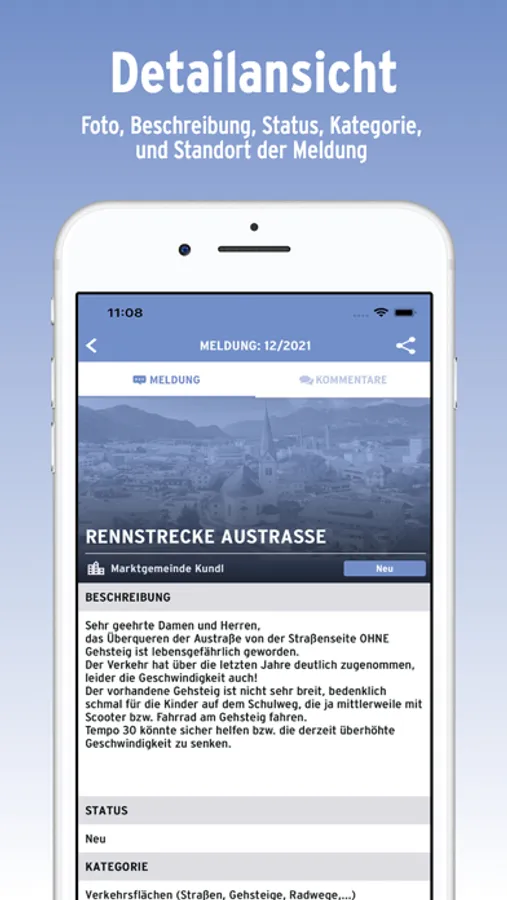 Auch die Bürgermeldungen wurden in diese APP integriert. Sollten Ihnen Mängel wie eine defekte Straßenlaterne oder Schäden an öffentlichen Einrichtungen auffallen, können Sie diese schnell und unkompliziert melden.