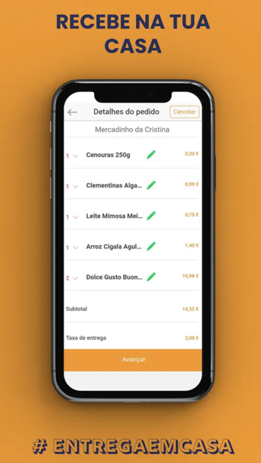 Com a Entrega em Casa pode fazer encomendas de produtos frescos dos seus comerciantes locais, diretamente na aplicação.