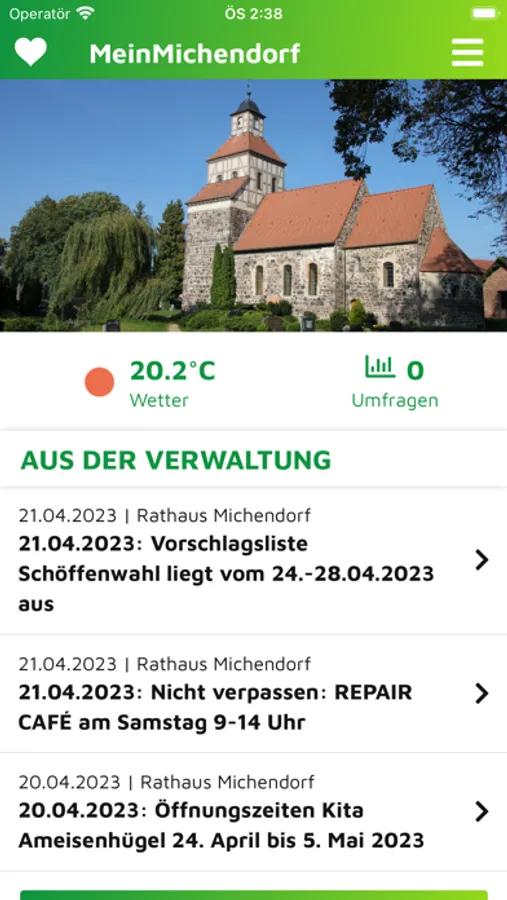 MeinMichendorf ist ein kooperatives Nachrichtenportal für Bürger, Besucher und alle, die sich für die Gemeinde Michendorf interessieren. Hier finden Sie aktuelle Lokalnachrichten und Veranstaltungen der Stadt und der “Tourismus-Marketing Brandenburg”. Außerdem können Verwaltungsdienstleistungen recherchieren oder aktuelle Probleme in der Stadt melden.