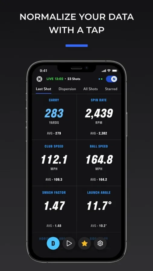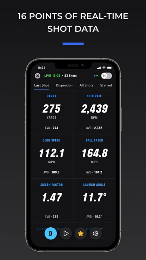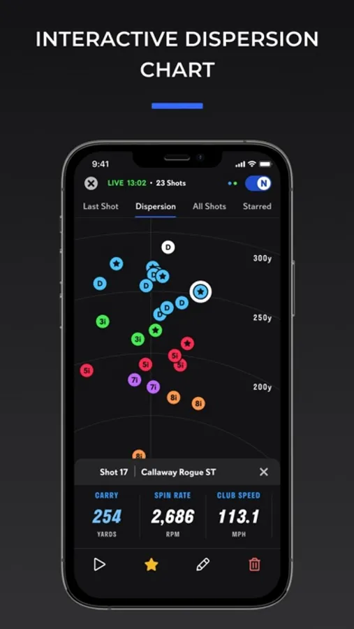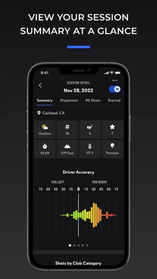 Dispersion Charts & Averages: See where your game needs improvement and analyze trends happening in your practice session to get the most out of each swing.
