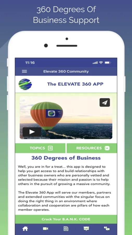 The Elevate 360 App is a community app designed for members, partners and other extended businesses who need and want to provide products and services to each other in collaboration and cooperation generating ecommerce in the process.