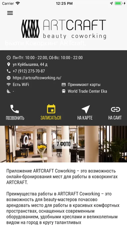 Приложение ARTCRAFT Coworking – это возможность онлайн-бронирования мест для работы в коворкингах ARTCRAFT.