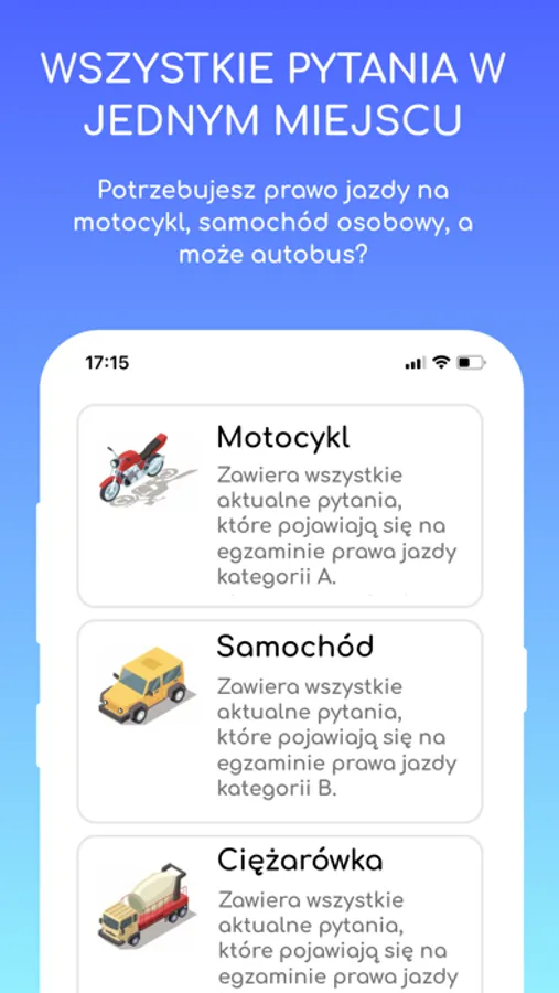 Prawo Jazdy Plus dla osób ubiegających się o prawo jazdy ułatwia przygotowanie się do egzaminu końcowego. Aplikacja oferuje oficjalny zestaw pytań Ministerstwa Infrastruktury (najnowszą wersję), oferuje nowoczesny dostęp do nauki oraz w łatwej i zabawnej formie pomaga użytkownikowi przyswoić dużą liczbę pytań.