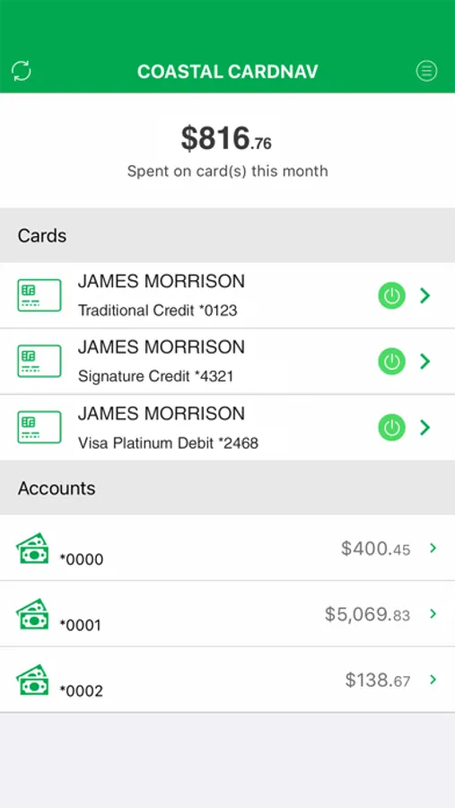 Coastal CardNav puts you in control of your Coastal debit and credit cards. With Coastal CardNav, you can turn your cards on and off, control where your cards can be used, receive alerts, set spending limits, and manage transactions. Download the Coastal CardNav app to manage your cards today!