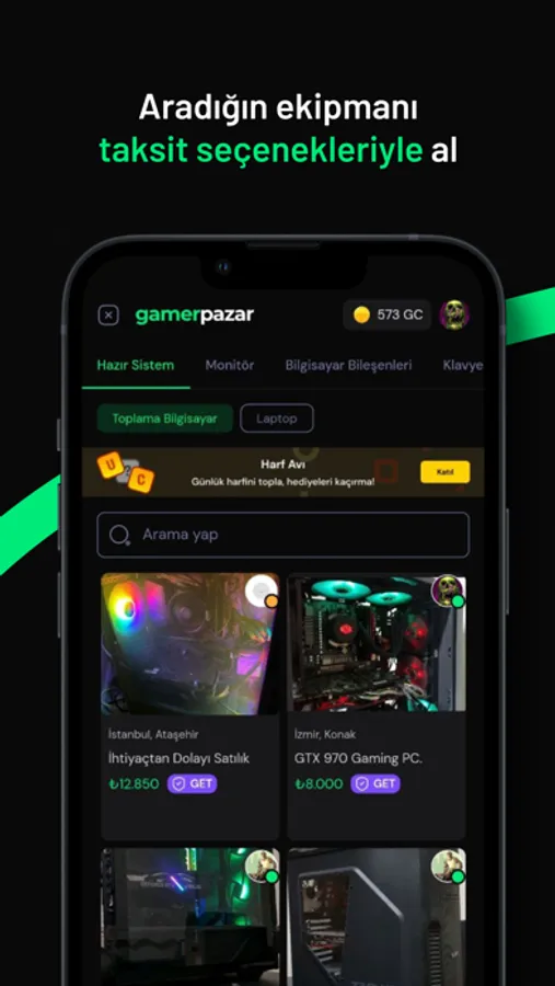 İhtiyacın olan tüm oyuncu ekipmanlarını gamerpazar'da bulabilirsin. İkinci el razer klavyelerden, toplama bilgisayarlara erişebilirsin. Uygun fiyatlı ekipmanları kaçırma.