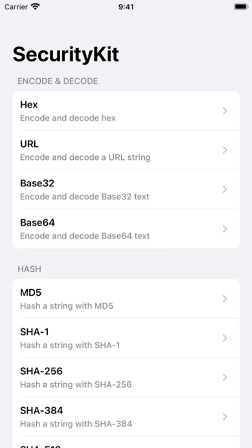 - OAEP, PKCS1, PKCS1MD2, PKCS1MD5, PKCS1SHA1, PKCS1SHA224, PKCS1SHA256, PKCS1SHA384, PKCS1SHA512, sigRaw