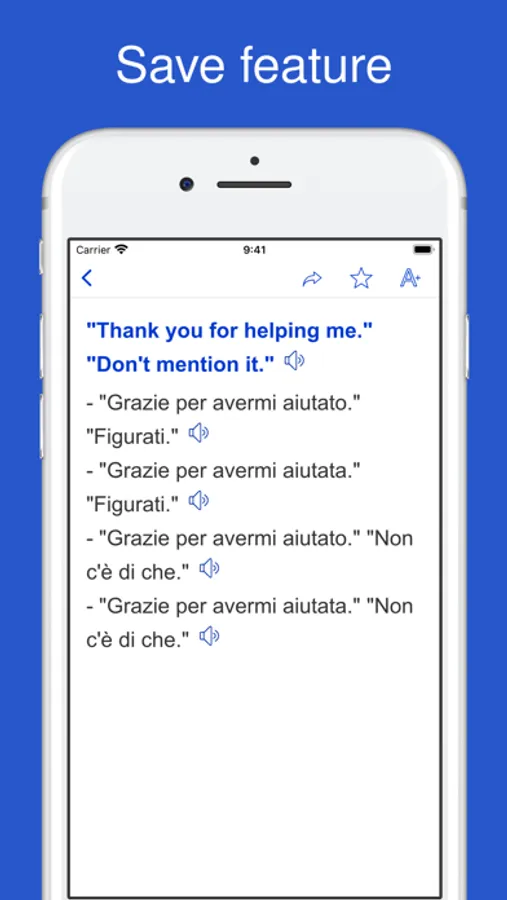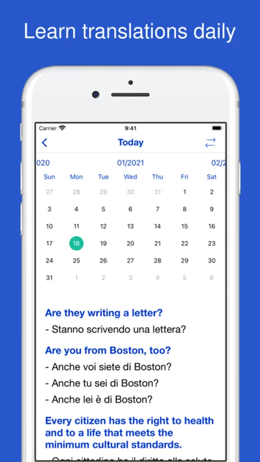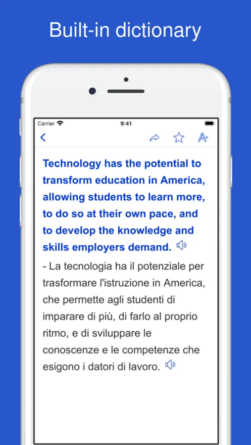 This application provides English - Italian sentence dictionary.