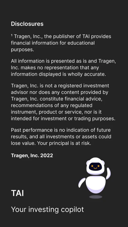 TAI is your ETF and stock investing copilot, built to help you navigate the stock market and learn about investing with ease.