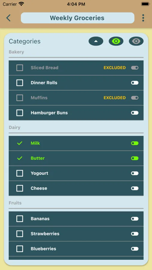Create categorized lists for longer lists that need to be organized by subgroup of products. Create uncategorized lists for simpler, shorter, TODO-style checklists.