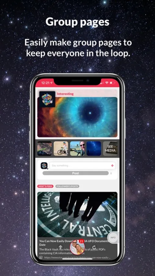 • Features Include: Notifications; upload media; albums; groups; react to posts; tagging; hashtagging; privacy controls; and more!