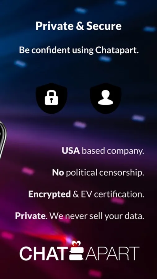 Easy, beautiful, uncensored and private social media. Chatapart will never sell your data to anyone. USA based company with reputable leadership team – We value your privacy and security. All communications through Chatapart are encrypted to the highest level available. Your data is locally stored on Chatapart servers, away from cloud intrusions and access.
