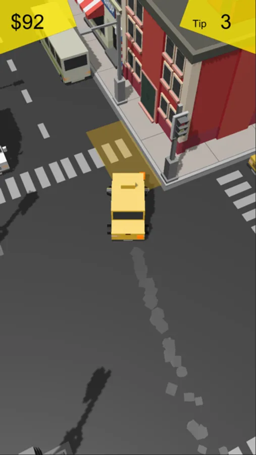 Game is played in topdown view as you race through the town to become the top taxi driver.