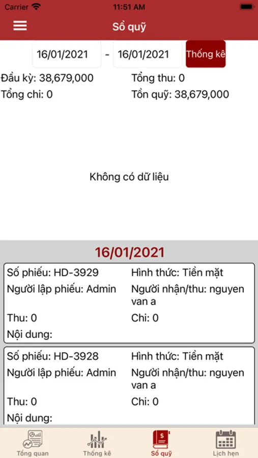 - Thống kê cho các hạng mục khác nhau.