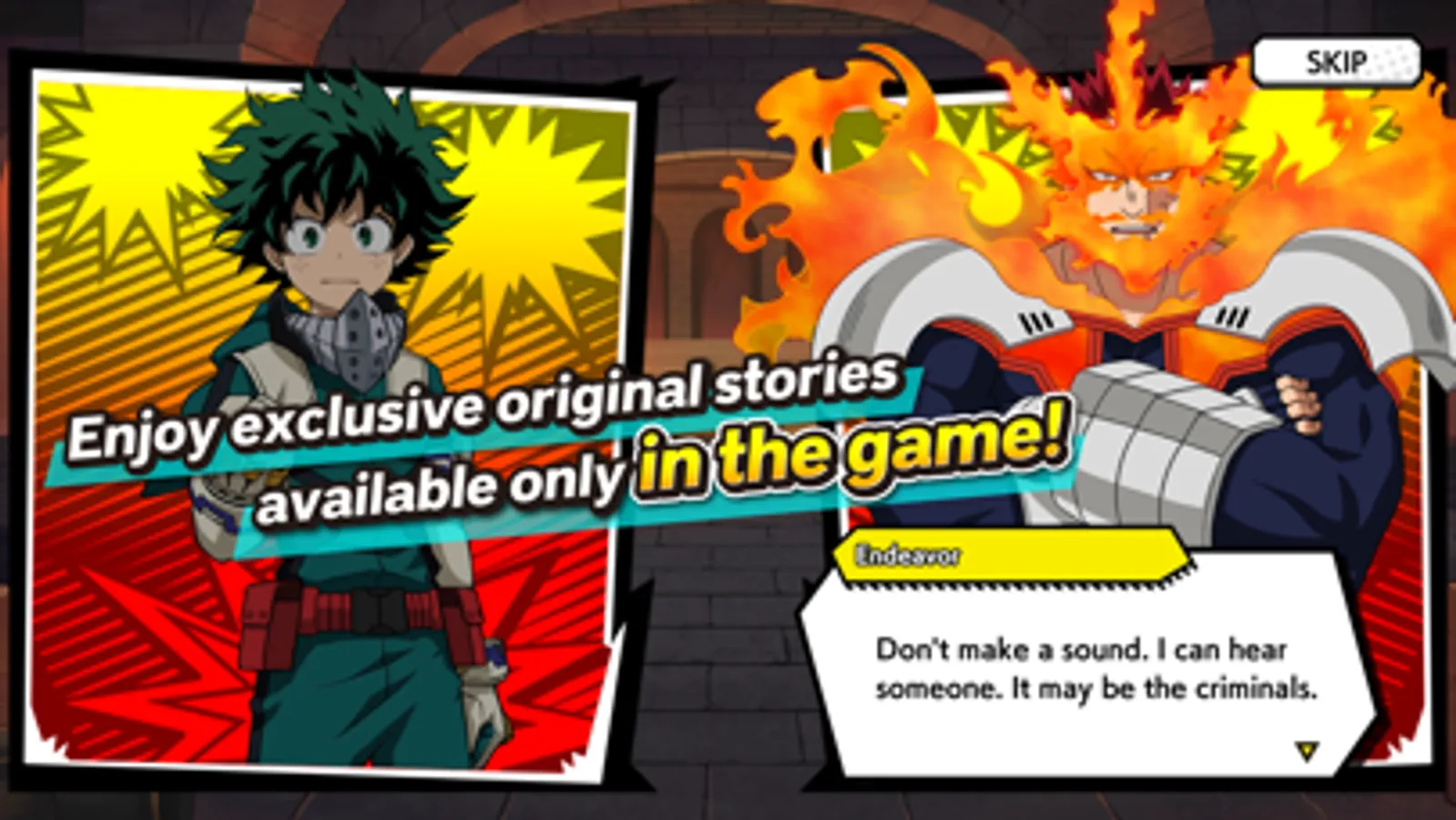 Relive beloved scenes from the anime as you strive to turn Deku and his friends into pro heroes!