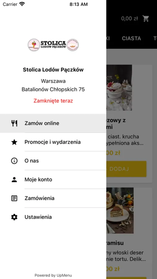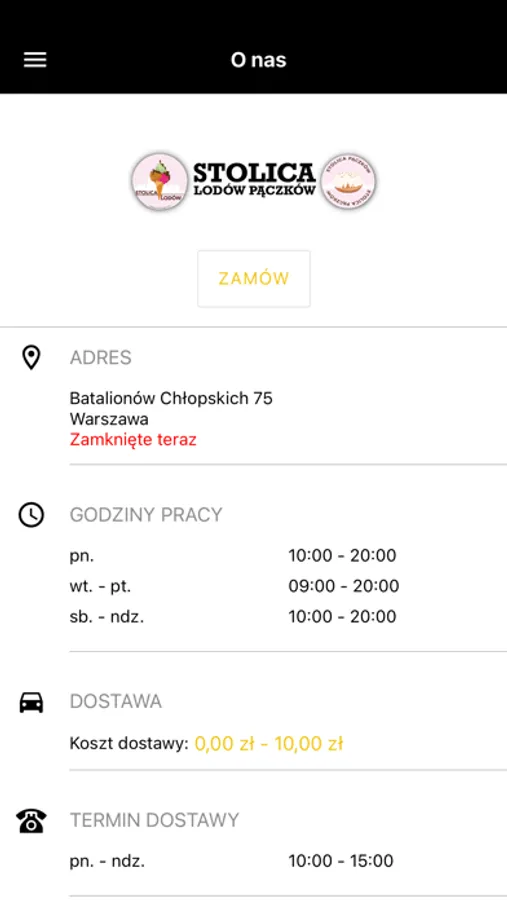 Oprócz zamawiania online aplikacja pozwala sprawdzić: