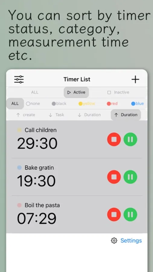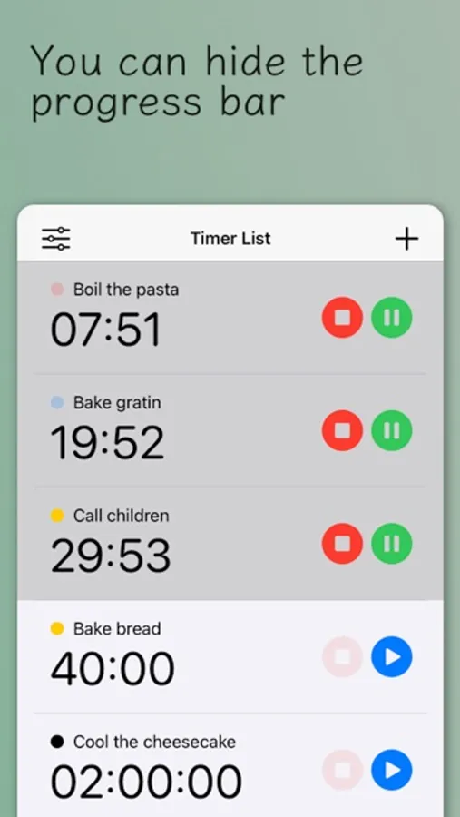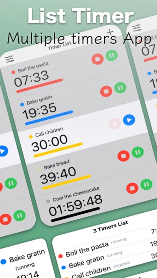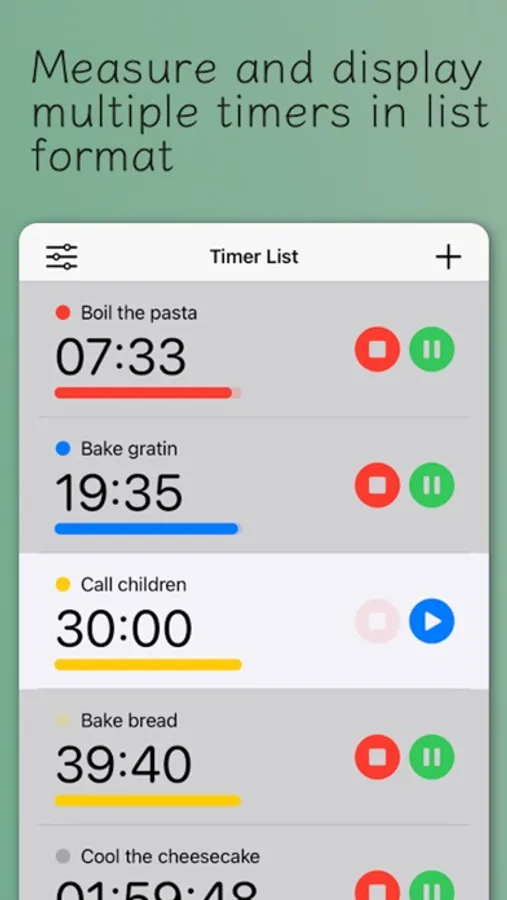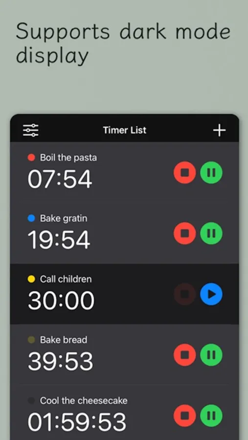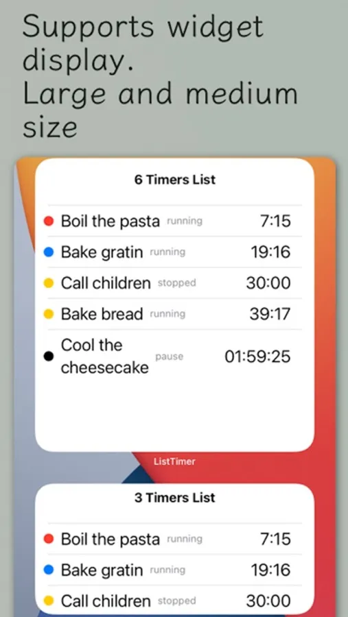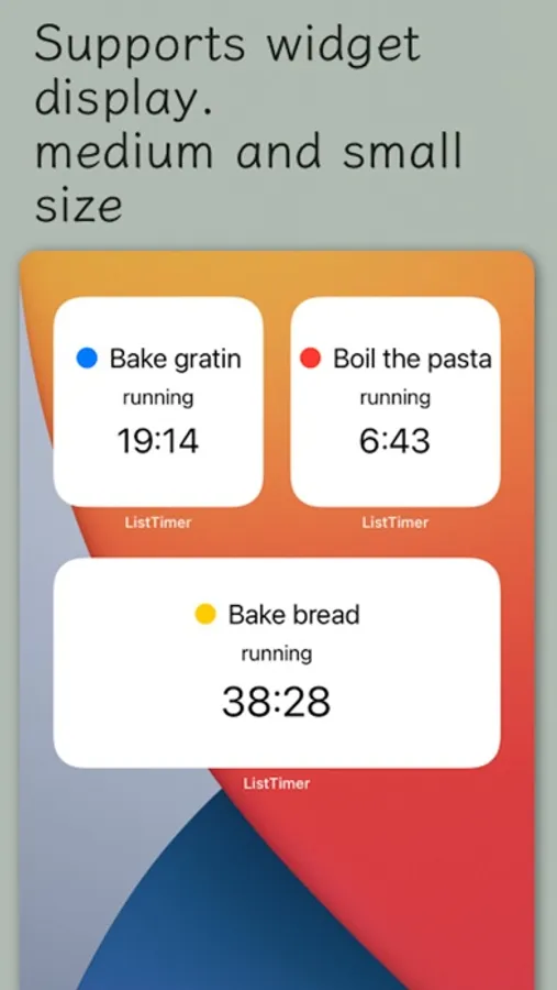 Multiple timers can be displayed as a widget display on the iPhone home screen making it easy to check the progress.