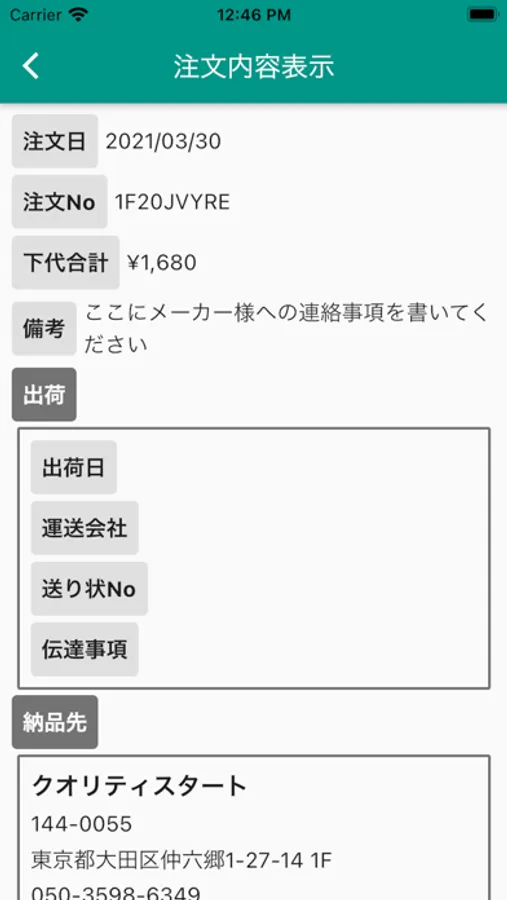 2. メーカー様のお届け先を登録し、お届け先に利用案内のメールが送信される。